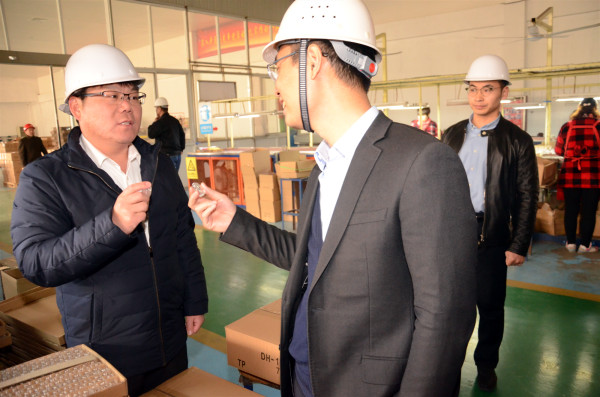 鼎新訊,2月13日,日照市經(jīng)濟(jì)技術(shù)開(kāi)發(fā)區(qū)工作委員會(huì)副書(shū)記厲偉同志在開(kāi)發(fā)區(qū)經(jīng)發(fā)局陳科長(zhǎng)及相關(guān)同志的陪同下到山東鼎新集團(tuán)調(diào)研考察并指導(dǎo)工作,厲偉書(shū)記代表開(kāi)發(fā)區(qū)黨工委給鼎新全體員工拜年,對(duì)我司春節(jié)期間堅(jiān)守在生產(chǎn)一線崗的員工表示慰問(wèn),對(duì)我司確保節(jié)日期間安全生產(chǎn)表示贊賞。公司副總裁鄭陽(yáng)、總經(jīng)理焦興華陪同。