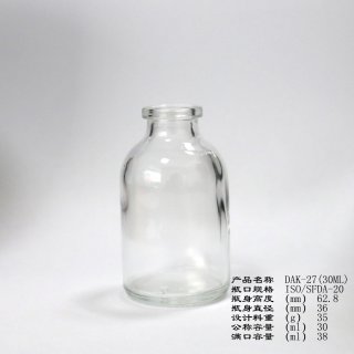 | 型號(hào) | 口徑 ISO/SFDA-20 | 瓶高(mm) | 瓶身直徑(mm) | 料重(g) | 容量(ml) |